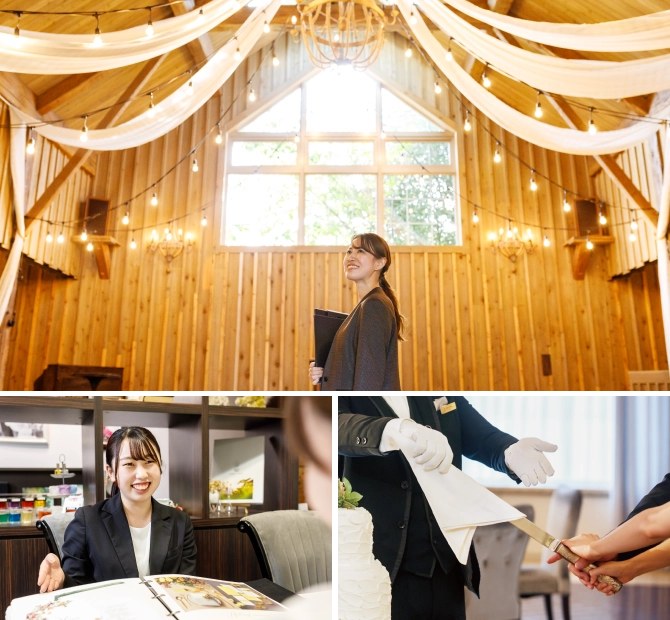 結婚式を行うために作られた「ゲストハウス・専門式場」で活躍するウェディングのプロを目指します。ガーデンやプールがあったり、演出や装飾などの自由も高かったりと、新郎新婦こだわりの空間を創り上げることができるところが特徴です。
