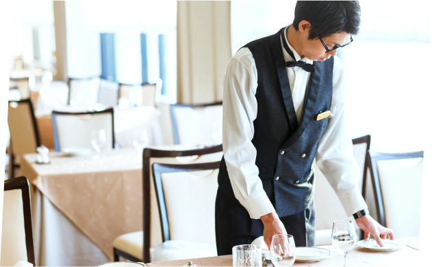 - 披露宴は、数百万円という高額なお金を払って、新郎新婦様がお客様をおもてなしする場です。サービススタッフとして、その2時間半の大事な披露宴を任される責任の重さが、大変だと感じます。
