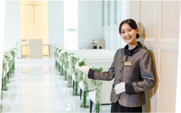 - 毎日違うお客様とお会いしたり、結婚式も毎回違う進行なので同じ業務を行うことがありません。そのため、経験を活かして臨機応変に対応していくのが大変ではあります。自分なりにイメージして、常に先読みをして動くことやチームみんなとコミュニケーションを取ることを意識するように心がけています。